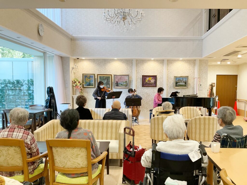 1月にご入居されたご利用者様のご家族と、以前コンサートをしてくださった演奏者の方がお知り合いとのこと。