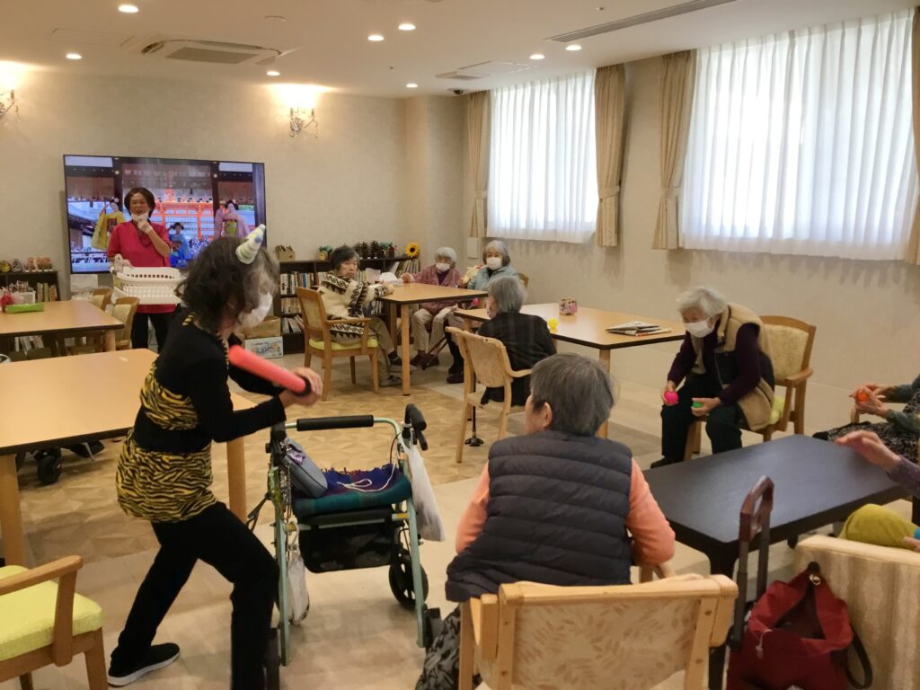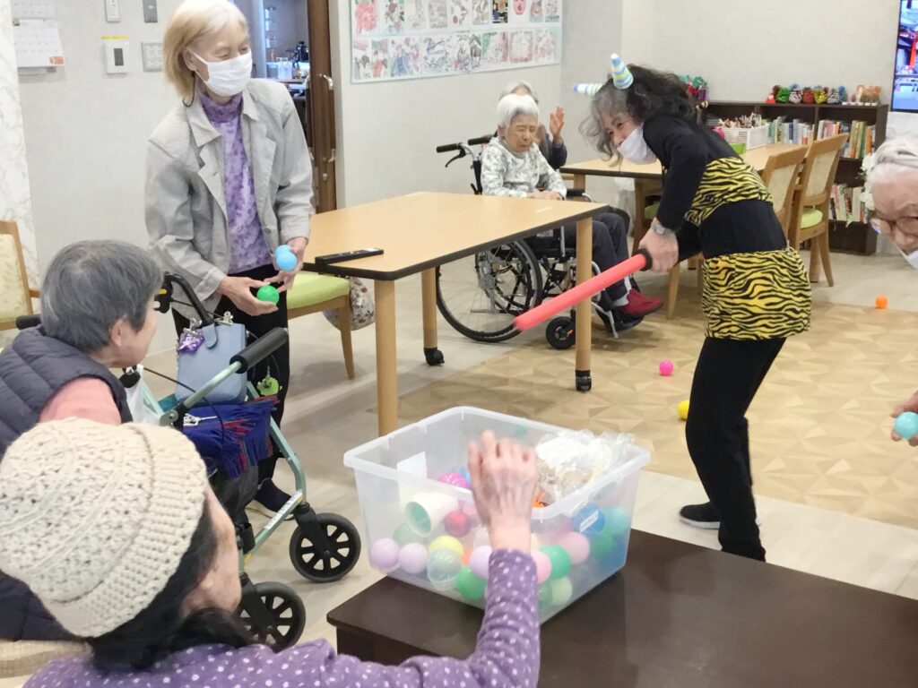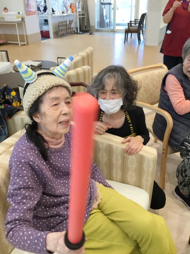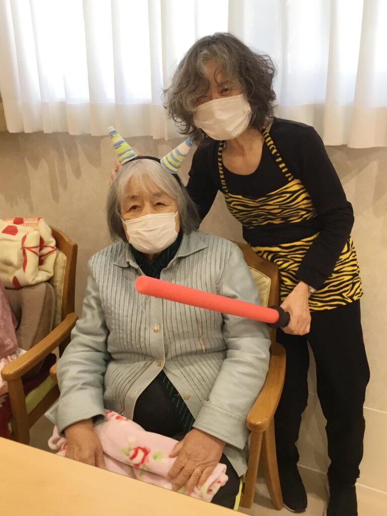 有料老人ホーム鬼は~そと~🎵と、投げたのはボール‼なんとも、可愛らしい女鬼💛