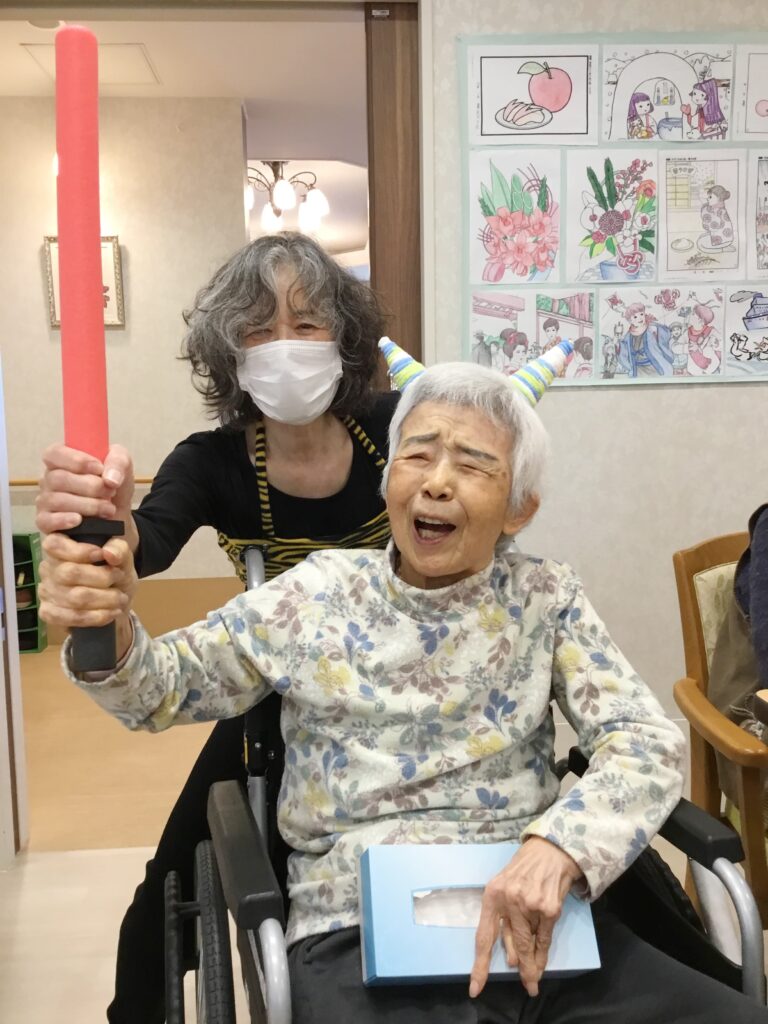 痛い...痛い。と、鬼さん...。頑張ってくれました。そのおかげで、ご利用者様の素敵な笑顔が見られました。今年も、皆さまに福は~内(ウチ~)( ´∀` )